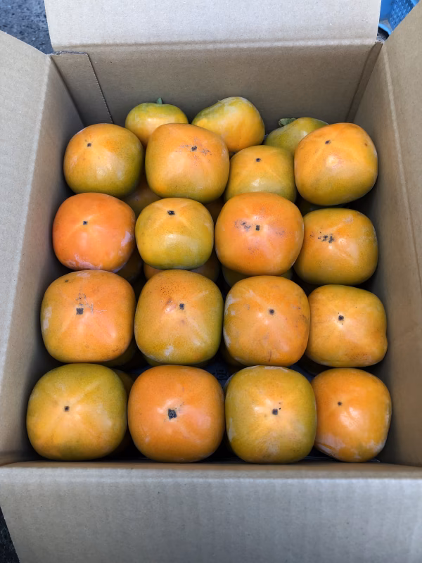 たねなし柿は渋柿で、炭酸ガスを使って渋抜きをした柿です。家庭用で傷ありですが、味は変わりません。