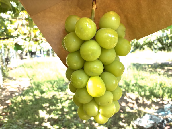 シャインマスカットの甘く、ジューシーで爽やかな味、食べた瞬間の「パリッ」としたはじける食感をお楽しみください。