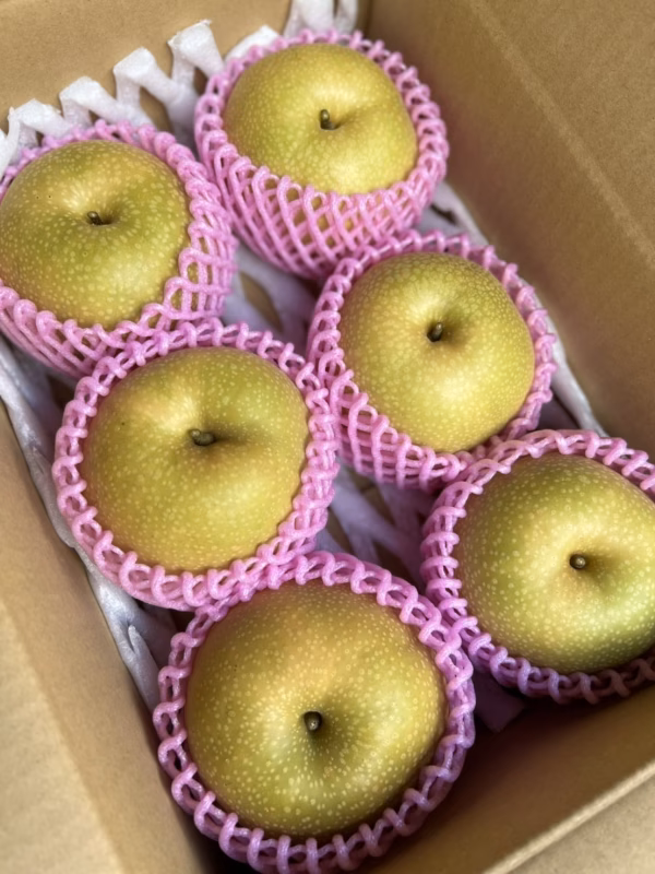 ▼商品概要 大人気新甘泉の翌年誕生した次世代エースです^_^ 大人気「幸水」と「二十世紀梨」の木を掛け合わせて作られたオリジナルの梨です❣️ シャキッとした食感は二十世紀梨譲り、コクのある甘味は豊水の良い所を受け継いでいます! ▼品種・味の特徴 糖度14度と甘みもあり、9月上旬に収穫できる赤梨です! 準備でき次第発送さして頂きます。 収穫数が定まらないので随時限定数販売致します。 ▼数量、分量の目安 5キロ 8.9.10.11玉 サイズによって球数が変更しています。 大玉希望の方は問い合わせお願いします。 できる限り大きいサイズを箱詰めさせて頂きます。 ▼栽培/生産方法、こだわり 我が家は土作りに力を入れています。 体力と天候とカラスとの知恵比べです^^;