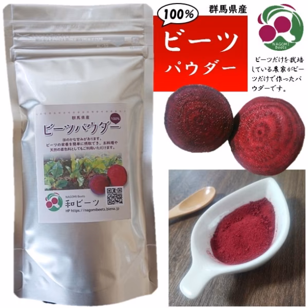 群馬県前橋市の赤城山の麓で元気良く育ったビーツのみで作ったパウダーです。