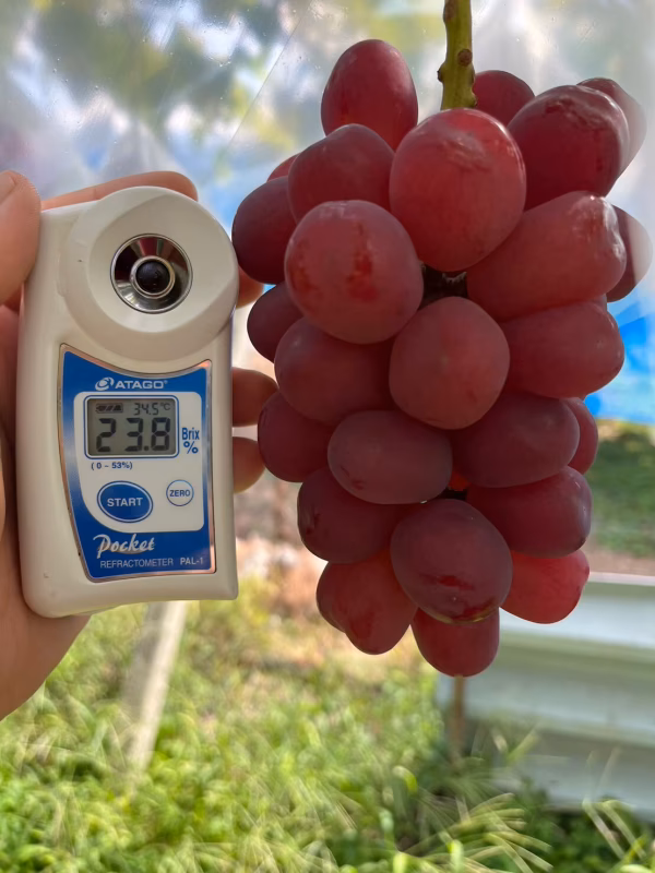 その大自然の恩恵と培ってきた叡智から生み出された当園の甲州戦国ハウスオブシャインは最高糖度20度を超えてきます。