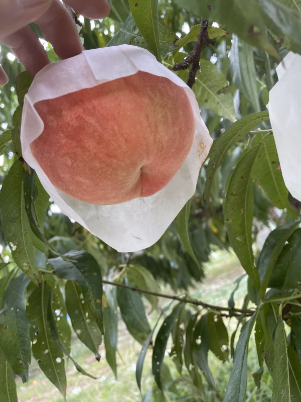 のろまんでは、すべての桃に袋をかけます!