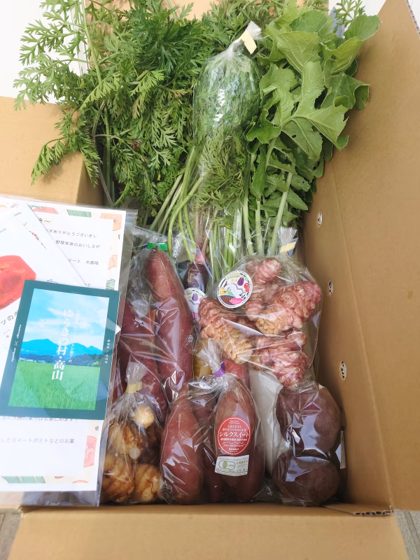 ▼商品概要 オーガニックヴィレッジ宣言をした、群馬県高山村からお届けする旬の野菜セット!! その中で、有機栽培に取り組む ・銀河高原ファーム 後藤さん ・kimidori farm 平形さん ・上州高山農園 中澤さん ・農園花笑み 渡辺藍さん ・農園わとわ 渡辺聖光さん 5名の農家さんの旬の野菜をセットでお届けします! 里山の豊かな自然の中で育まれた野菜は、野菜本来の味わいで、まさに「たからもの」です! ▼品種・味の特徴 季節によって、その時いちばん旬で美味しいお野菜を6〜8品目ほどお届けします! 主な野菜例 ・春ーかぶ(白、赤、黄)、ビーツ(紫、黄、渦巻き)、サニーレタス、水菜、アスパラ、山菜類 ・夏ー高山きゅうり、とうもろこし(黄・白)、枝豆、白なす、カプリスなす、ズッキーニ、ゴーヤ、ミニトマト ・秋ーまこもだけ、原木まいたけ、さつまいも ・冬ー人参(オレンジ、赤、黄) 高山村の有機野菜を召し上がる方からは、「エグみがなくて野菜本来の甘味が感じられるね」と言われます。 ぜひ季節ごとの、「たからもの」な美味しさを味わってください。 <高山村の伝統野菜「高山きゅうり」を知っていますか?> 高山村で150年以上、種を繋いできた「高山きゅうり」。 通常のきゅうりと比べ3〜4倍も大きく、食べ応え抜群のきゅうりです。 皮と果肉は柔らかく、シャキシャキした食感が楽しめます! 一口食べればフルーティーでみずみずしさが広がり、特有の青臭さが少ない高山きゅうりは、生はもちろん加熱しても美味しく食べられます。 漬物はもちろん、スープや煮物でも味わってみてください! 時期によって、この高山きゅうりも野菜セットでお楽しみいただけます♪ ※販売時期や生育状況によっては、含まれない場合があります。 野菜ひとつひとつから高山村の風土を感じられる、農薬・化学肥料不使用の野菜セットをぜひお試しください! ▼数量、分量の目安 季節の旬野菜を7〜8品目お届け!! ▼栽培/生産方法、こだわり 農薬・化学肥料不使用 次世代に繋げていく、環境に配慮した持続可能な農業を実践しています! ▼注文に際しての注意点(配送方法や納期指定など) *商品の性質上、内容のご指定には沿いかねますのでご了承ください *日曜日は発送をお休みしております。  あらかじめご了承のうえご購入いただけますと幸いです。 高山村ホームページURL https://vill.takayama.gunma.jp/ 高山ベジトリートインスタグラム https://www.instagram.com/kogurin_0926/