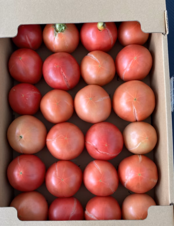 裂果しているので普通のトマトより傷みが早いです。冷蔵庫で保管してお早めにお召し上がりください。日によって裂果度合が違います。裂果部分が黒くなることもありますが切り取ってください。