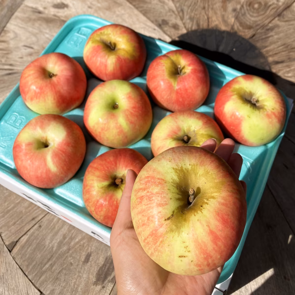 彩香は病気に強く、生命力に溢れるりんごです🍎✨ パンチのある酸味と、ほどよい甘み、シャキッとした歯ごたえで生食ではもちろん、煮崩れしにくいのでお菓子やお料理用にも人気の品種です。 ポリフェノールが多いので、皮に渋味が感じられる場合があります。 美容と健康にお召し上がりいただく場合にはぜひ皮ごと、お子様や渋味が苦手な方は皮をむいてお召し上がりください。 ※こちらは「訳ありご家庭用」りんごです。 小さめの傷やあざのあるもの、皮がザラザラしているもの、ヘタがない、ヘタの部分に亀裂の入っているもの、日焼けしているもの、全体的に色が薄いものが入ります。皮をむいたり、部分的に取り除かないと食べられない箇所のあるりんごも入りますが、栽培方法や味は「良品」と変わりません。ご自宅で食べていただくには問題のない範囲のものをお詰めします。 容量は3kg、5kg、10kgをそれぞれ販売しております。 家族構成や用途に合わせてご注文くださいませ🍎 3kg(7~13個) 5kg(14~25個) 10kg(28~50個) <特別栽培認証> もりやま園で栽培しているりんごは全て青森県から特別栽培農産物の認証を受けています。 農薬は慣行栽培の5割以下、化学肥料は使わずに栽培しているので、皮ごとがぶりとお召し上がりください。 <葉とらずとは> 葉っぱを取らずに収穫まで栽培する方法のことです。昔は葉っぱをとり、影をなくし太陽にりんごの全面を当て、りんごを色むらなくきれいに赤くすることがよいと思われてきました。近年では、葉っぱを取らないで栽培した方が、葉っぱが光合成をおこない、りんごの実にたくさんの養分を送るので、見た目は色むらが出て真っ赤なりんごでなくても、栄養や食味の面では、葉っぱを取って栽培したりんごよりも勝ることが分かってきました。もりやま園では見た目よりも味重視で栽培しています。 <産地の特徴> 青森県弘前市の樹木・緑ケ丘エリア。青森りんご発祥の地です。 <主な出荷先> 学校給食やオーガニックスーパー、自然食品店などに出荷しています。)