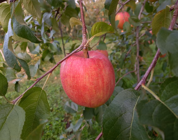 ▼北陸は富山県のほぼ中央、立山連峰を望む射水市池多地区の丘陵地帯にて三十数年前より栽培を行ってきた比較的歴史の浅い新しいりんご園です。父より引き継いで他所より旨いりんごを目指して日々研さんを積んでいます。