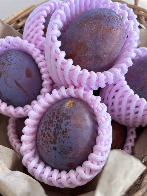 最大で80〜100gほどの大きな果実がなる、卵🥚大の大玉品種のプルーンです。皮目の酸味と果肉の甘味のバランスが良く、食べ応えのある逸品です。