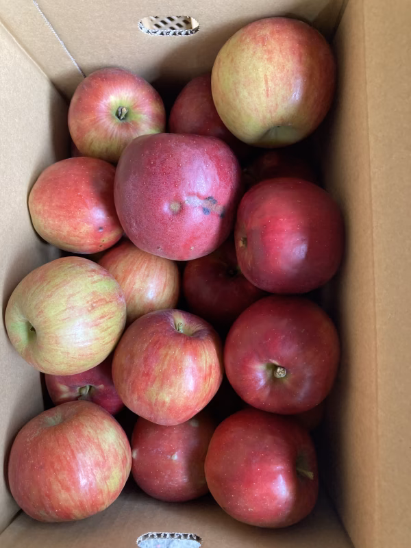 紅玉はもともと小さいりんごで、大体140gから100g位の小玉で、キズやスレ、色むら、茶星、ワンチュンなどある家庭用訳ありです。