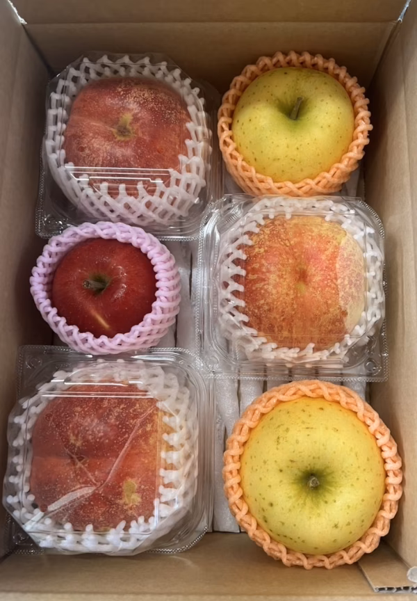 ※ご家庭用となりますので、小キズやサビ、核割れ(種が割れている症状)、若干の青み、形や大きさの不揃いなものや、突風による枝擦れ等の小傷(皮の破れない2㎝以内の擦れ)、腐敗性のない裂果が入ることもあります。