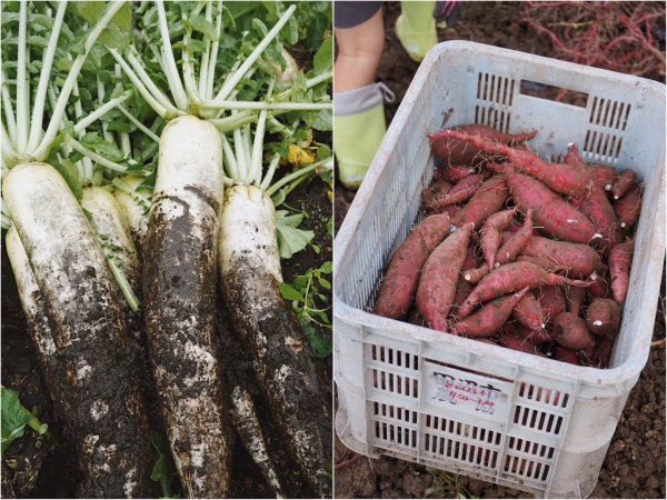 このふかふかの土は保水性と排水性に優れ、根野菜にぴったりな土壌で、大根がまっすぐ美しく育ちます。