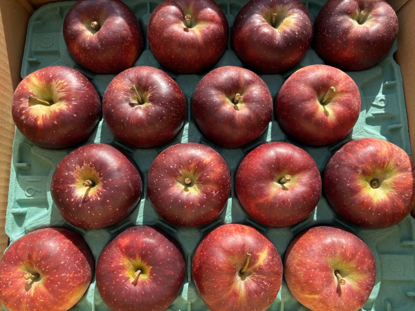 ※なるべくきれいな状態のりんごで荷造りする予定ですが、一部、りんごの表面の枝すれや、色むらや、サビなどがあるりんごなどが入る可能性がございますのでご理解くださいますようお願いします。