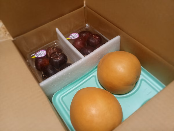 自家用のイチジク2パックと 新高梨の特大玉 約830g×2玉のセット