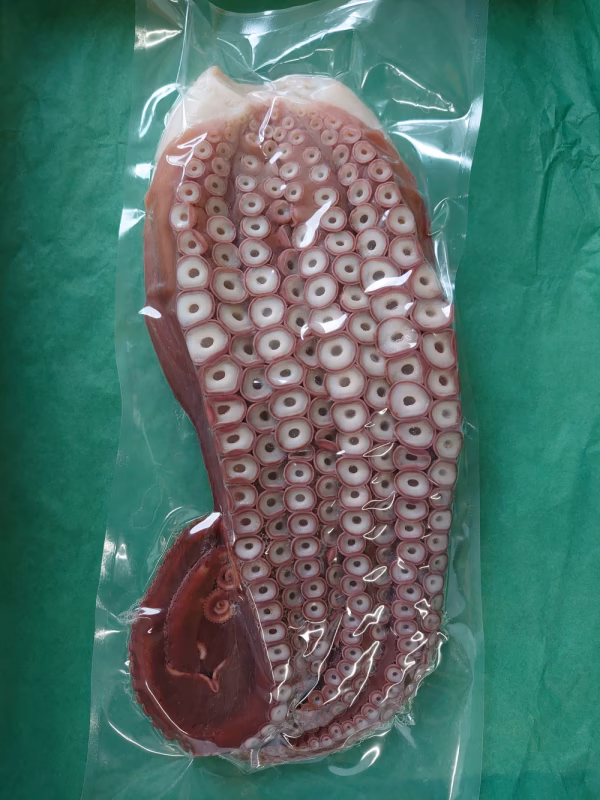 タコ箱漁で水揚げされたタコを即浜茹でし、真空パックをして急速冷凍しています。
