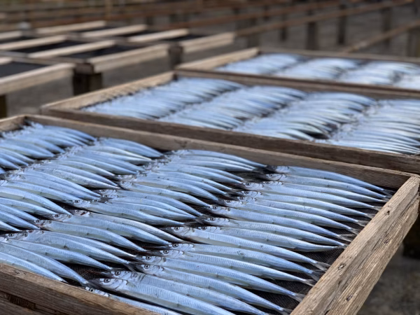 水揚げされたばかりのさよりを天日干し干物にいたしました。