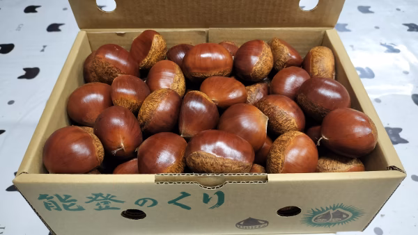 今秋収穫した晩生種の能登栗の大粒サイズのみをお送りいたします。