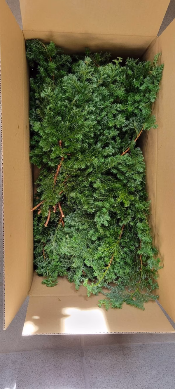 さつま杉はクリスマスリースなどを作る時にとても重宝するグリーン素材です。一般的な杉とは異なり、葉が柔らかくチクチクしません。