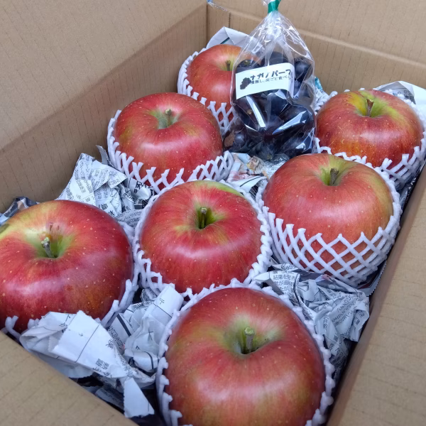 ・「信州りんご3兄弟Ⓡ」の次男「シナノスイート」大玉をナガノパープル粒とセットでお届けします