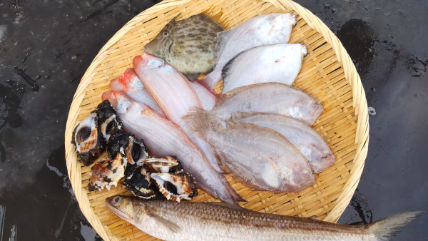 底引き網漁のためウロコ、皮がとれてる場合もあります。