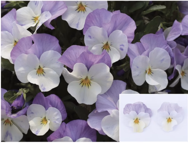 ビオラ「ももか」は、花つきが良く、丈夫で育てやすいことが特徴です。コンパクトにまとまる草姿で、高温期でも徒長しにくい性質を持ち、連続開花性に優れています。また、アンティーク調の花色が魅力で、バイカラーなど個性的で色幅の広いラインナップがあります。