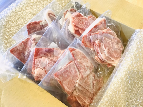 冷凍状態でお送りします。ボールなどに水をためて袋ごと入れて解凍するのが、ドリップが出にくく早く解凍できます。