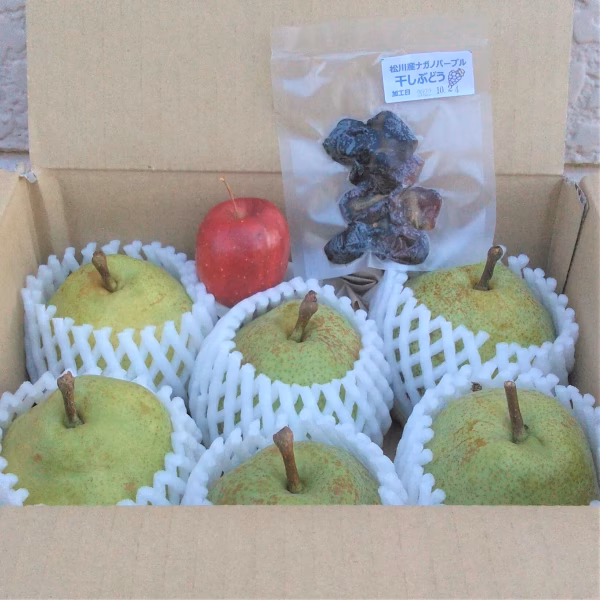 ▼商品概要 ・予約出品しておりましたが、本年は追熟の早めで10月末~の発送分も出品いたしました。 ・予約された方は11月に入ってからの発送となります 洋梨ラ・フランスお試し用良品5~6個入1.5㌔以上 ラ・フランスをご自宅で追熟して味わってみませんか ❄【ラフランスお試し価格でお得】  おまけ付き(濃厚な味ナガノパープルの干しブドウ)  お値段も通常よりお安く提供  通常お試しは家庭用ですが傷・擦れ等ない良品です。贈り物にも〇 ❄包装について…どちらか選択してください  「簡易包装」は新聞紙等も利用します  「贈り物包装」は市販の緩衝材を利用します ▼訳ありの内容 小さなスレ等あります。食べるのに支障のない程度 ▼品種・味の特徴・食べ方 香りが良く、舌触りは滑らかで上品な味わいがあります 到着後に追熟が必要です 追熟と食べ方については案内を同梱いたします 表皮の茶色は「サビ」でありラフランスの特徴でもあります。病害虫ではありません ▼数量、分量の目安 洋梨のラ・フランスを5~6個 ▼栽培/生産方法、こだわり 果樹園は草生園ですが除草剤は使用していません 樹の基や園地周辺部など機械の入らない所も草刈りをしています 開花時期の受粉作業は手作業で1花ごと行っています ▼注文に際しての注意点(配送方法や納期指定など) 【配達時間帯の指定を承ります】