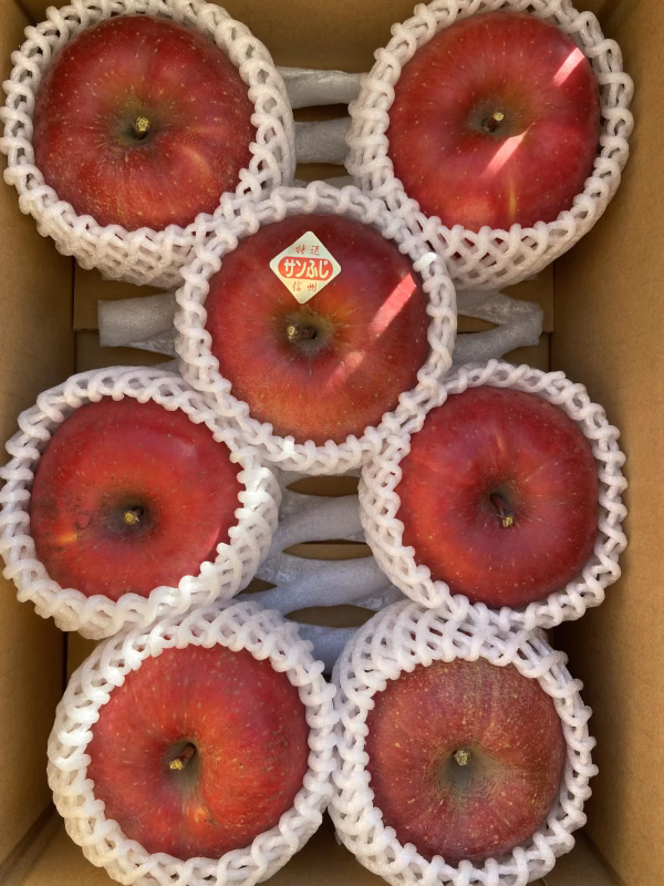 ※りんごは完熟すると、りんご自身が内側から作り出す天然のワックス成分によりベタベタすることがありますが、安心してお召し上がりください。