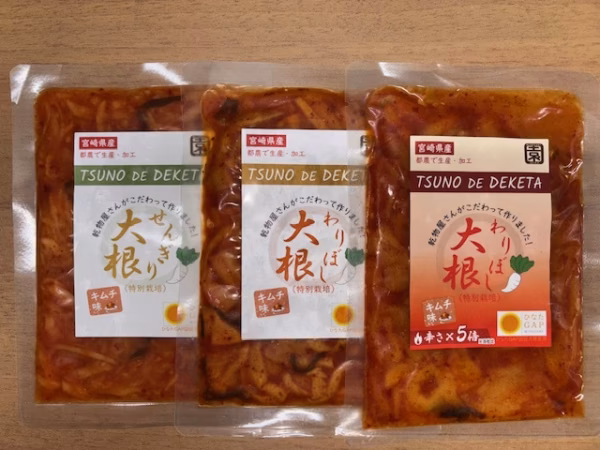 昔ながらの天日干しで作ったわりぼし大根がお漬物になりました!宮崎の太陽の光をしっかり浴びた大根のキムチ漬けです。乾物大根から漬けているので余分な水分がなく、うま味と辛味がしっかりと味わえます。