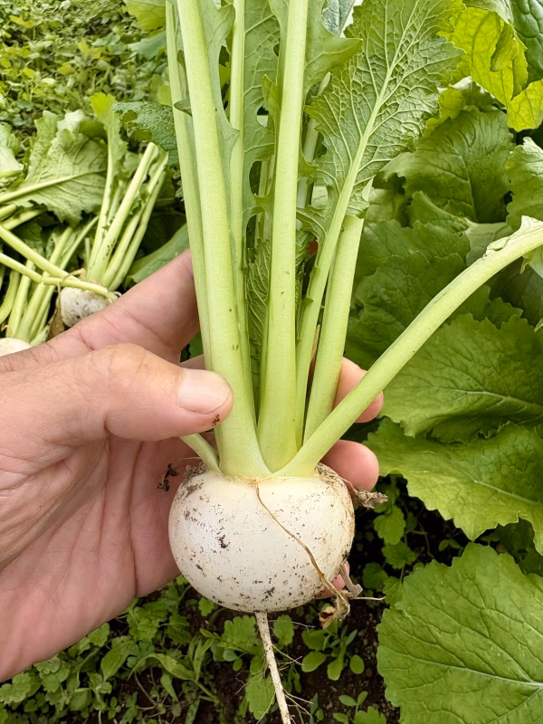 自然味溢れる畑で採れた新鮮なカブ!
