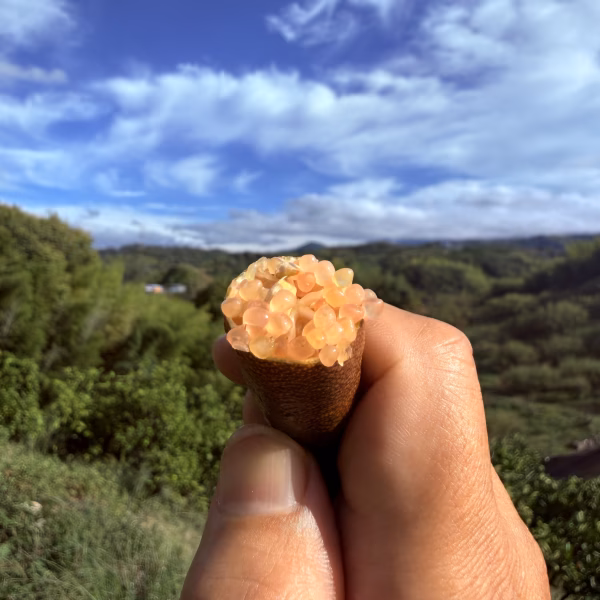 ▼商品概要 フィンガーライムはオーストラリア原産、300品種以上あると言われております。 2022年4月、品種確定をした本物の苗を長野県フィンガーライムジャパン様へ直接伺い購入、みかん山へ14品種定植しました。 ▼品種・味の特徴 色、粒々の大きさ、味、香り、種の混入量、それぞれ品種によって違います。収穫時期も品種により異なります。品種を選ぶ事は出来ませんのでご了承お願い致します。 ・噛んだ瞬間プチプチとライムが弾けます! ・果汁と違い固形ですので、食材に乗せる事が可能です。 ・様々な料理に合います!焼肉、サラダ、は勿論、アイスクリーム、チップスター、チョコレート他、ワンランク上に激変しますので、色々楽しみながらお試し頂けますと幸いです! ▼数量、分量の目安 フィンガーライム1本の大きさは同品種でも違います。一般的には10g〜20gが多いのですが、中には20gを超えるサイズもございます。 本数は重さにて手配致しますので、100g平均本数は7本前後となります。 ※1本10g以下のフィンガーライムは選びません。 ▼栽培/生産方法、こだわり フィンガーライムは肥料を多く必要としますので、なるべく切らさない様管理しております。栽培場所は南面傾斜地の日当たり良いみかん山にて栽培しております。 ▼注文に際しての注意点(配送方法や納期指定など) ※品種は選べません ※種はあります ※梱包は60cm以下の段ボール、物をビニール袋に入れ、乾燥防止の為、空間を新聞紙にて埋めます。 ※ヤマト運輸常温にて発送致します。 ※ジップロック等袋に入れ、野菜室にて保管願います。1週間以上待ちますが、なるべくお早めにご使用くださいませ。 ⭐︎⭐︎⭐︎みかん農家ですので、ご注文感謝のお気持ちとしてみかん3個同梱させて頂きます!