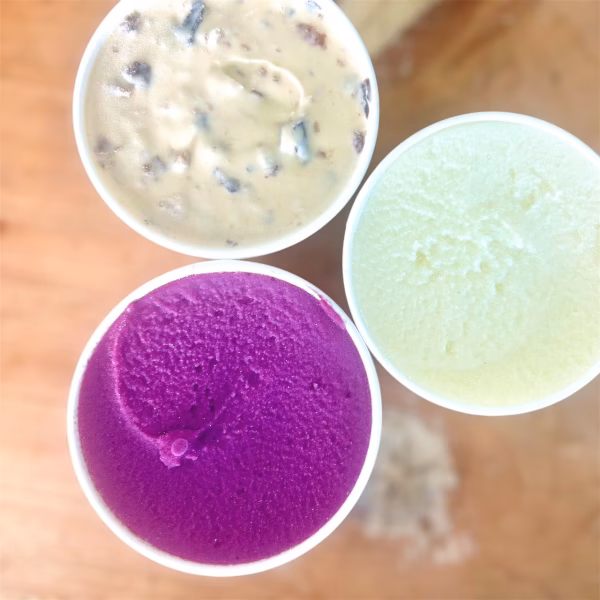 【ことりはぶどう園】 当園で育てた完熟ぶどうを贅沢に使用し、素材の味わいをそのまま活かしたこだわりの氷菓シリーズです。 泉州の豊かな土地で実ったぶどうを丁寧に仕込み、それぞれの個性を引き出しました。 ⸻ ■ ラムレーズンのアイスクリーム 当園のぶどうをドライフルーツにして、香り高いラムに漬け込みました。 やさしいミルクと合わせることで、芳醇で大人の味わいに仕上げています。 ⸻ ■ クインニーナのシャーベット 完熟したクインニーナならではの、桃のように甘く華やかな香りが広がります。 ぶどうそのものの瑞々しさと上品な甘さをお楽しみください。 ⸻ ■ マスカット・ベリーAのシャーベット ぶどうらしい甘みとほどよい酸味が調和した、すっきりとした味わい。 素材そのものの果汁感を大切にした、シンプルで飽きのこないシャーベットです。 ◆内容◆ ラムレーズン120ml クインニーナシャーベット120ml ベリーAシャーベット120ml (大阪府の woodvillage icecream さんとご一緒に作らせていただきました。) ◆ぶどうの生産方法◆ 当園では、農薬の散布をできるだけ減らし、その結果大阪府農薬基準の87%もカットし、ひとにも環境にも優しいぶどう作りを心がけています。 ※画像はイメージです。実際の商品とは色味が異なる場合があります。 要冷凍