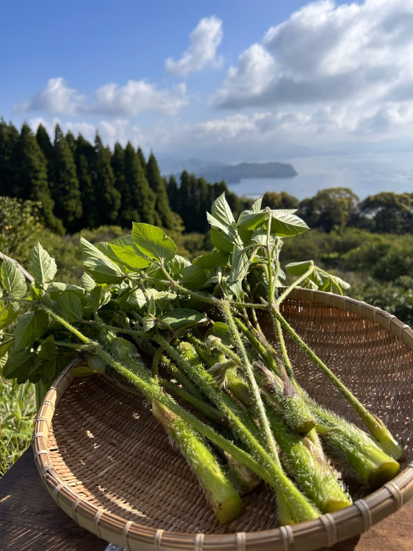 栽培期間中農薬、化学肥料、除草剤不使用で潮風と太陽を浴びて育った天然の山ウドを是非ご賞味ください!