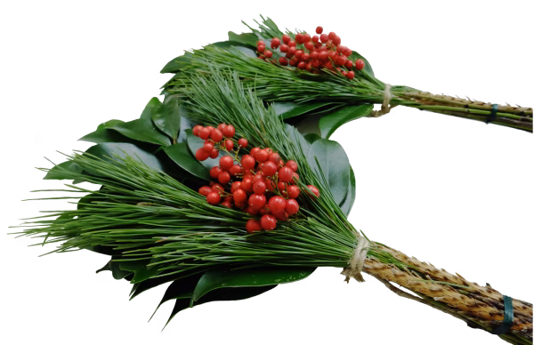 難を転じる南天、若松ををあしらった正月榊 天神は、生命力にあふれ、新年の神棚をを彩ります。