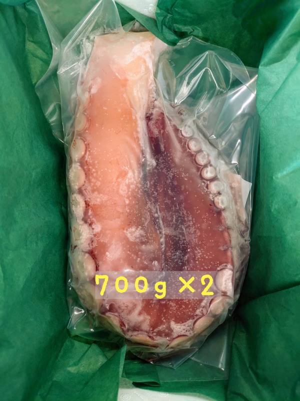 タコ箱漁で水揚げされたタコを即浜茹でし、真空パックをして急速冷凍しています。