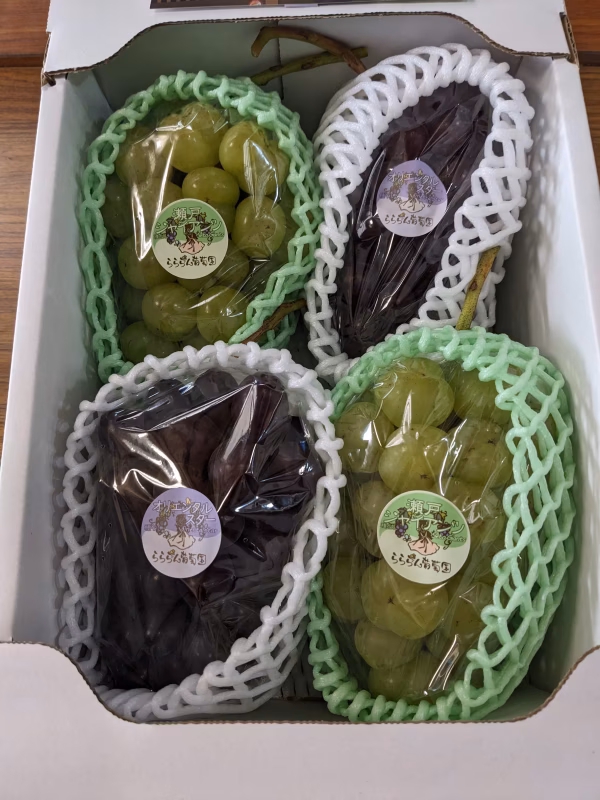 シャインマスカットの姉妹品種(片親がシャインマスカットと同じ安芸津21号)と言えますが、シャインマスカットよりさっぱりとした甘さで、酸味とのバランスの良い味です。