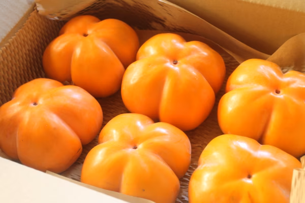 固いうちは渋味のある「不完全甘柿」ですが、《果肉が柔らかくなった完熟時》には渋味が抜け、飛び切りジューシーな柿になります。