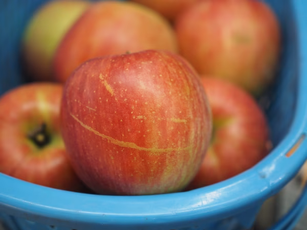 ※果皮の赤さはありますが、軽微な日焼け、打撲傷、枝擦れ傷、着色ムラ、さび、すす点による汚れなどなどございますので、びっくりするほど見た目がそろいません。特に今年は傷と肌荒れ(さび)が多い印象です。