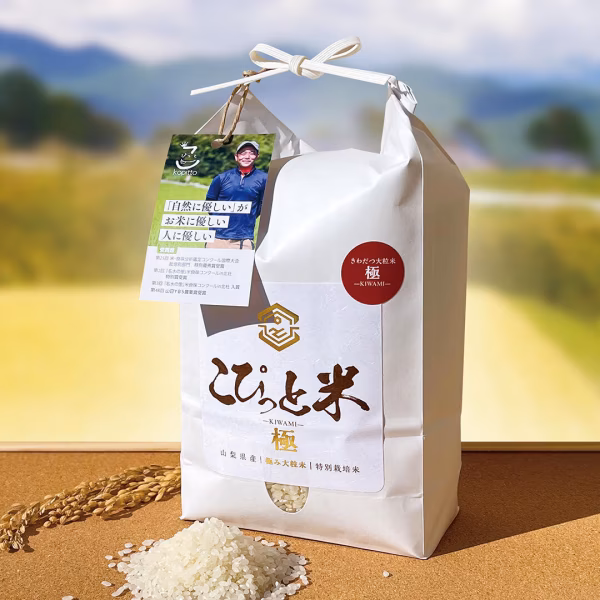 着目したのは「粒の大きさ」である。選別網目2.3㎜(通常米は1.85㎜)の特大麦用サイズで厳選した1等米100%使用。大粒で整粒が整ったお米は見た目でも、手の触感でも、口に入れた時のインパクトでも食べていただく方にワクワクする楽しみと驚き・充実感をお届けする究極の贅沢米が4年の時間を費やし完成した。水源は八ヶ岳湧水、標高600~800mの里山が残り絶滅危惧種ナミゲンゴロウの住む「環境特A水田認定圃場」で通常の化学窒素・農薬使用量50%以上削減の地域循環有機肥料を基本とした特別栽培米。