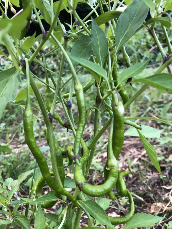 ひもとうがらし(たまに辛いものがありますが、基本的に辛味の無い唐辛子です。)