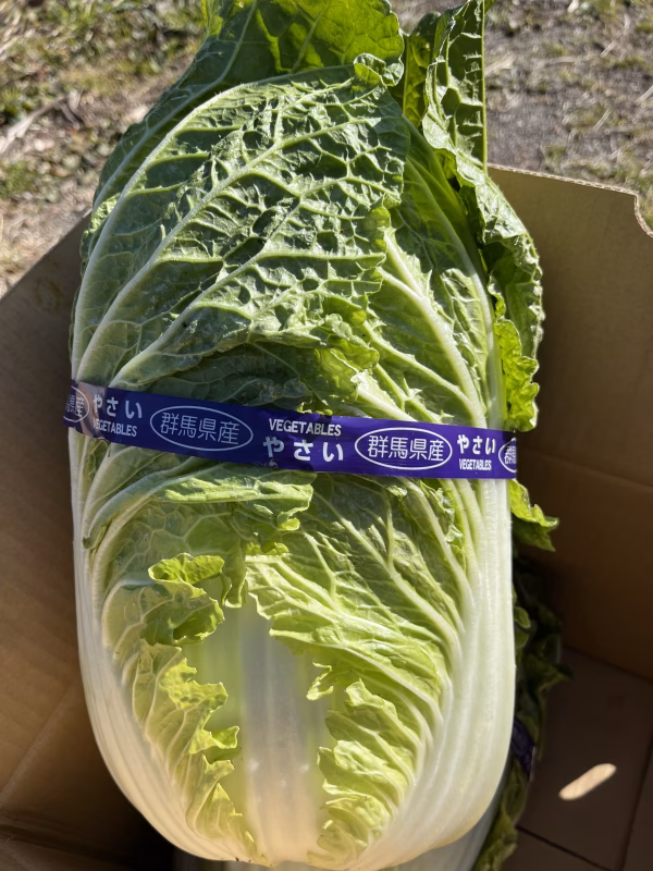 群馬県の空っ風と太陽をいっぱい浴びた大きな白菜です。