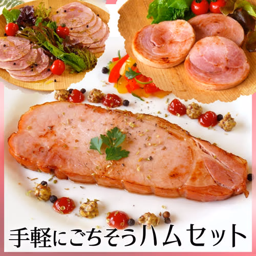 今回の商品はお得なハム3種類を組み合わせた、手軽にごちそうが作れるハムセットです。フライパンで焼くだけでOK!また、生焼けの心配がないハムはお料理に不慣れな方でも安心して調理ができます。