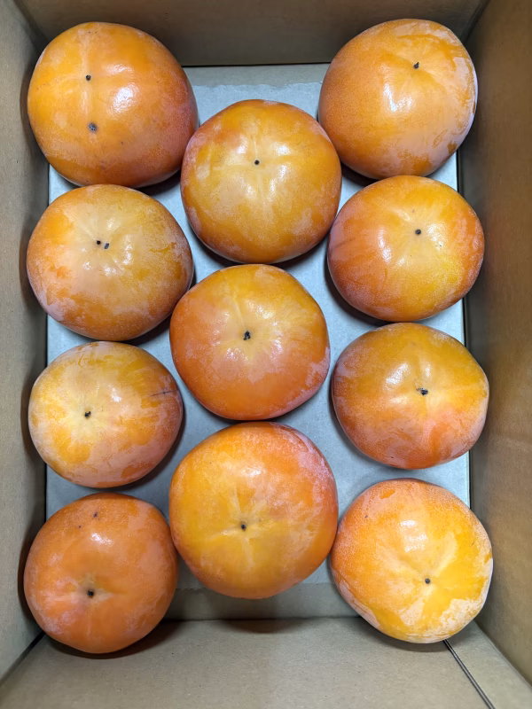 完全甘柿でたねなし柿と比べると糖度が高く濃厚な味が特徴となります。