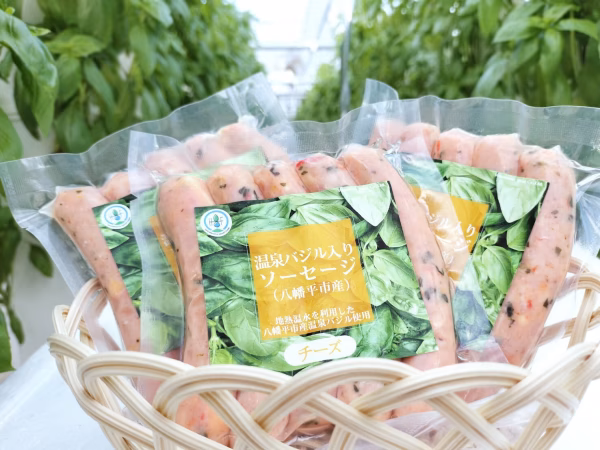 【大人気商品!】岩手県八幡平市/八幡平スマートファーム産「温泉バジル」を使用した「温泉バジル入りソーセージ」~ジューシー肉汁&バジルが絶品♪