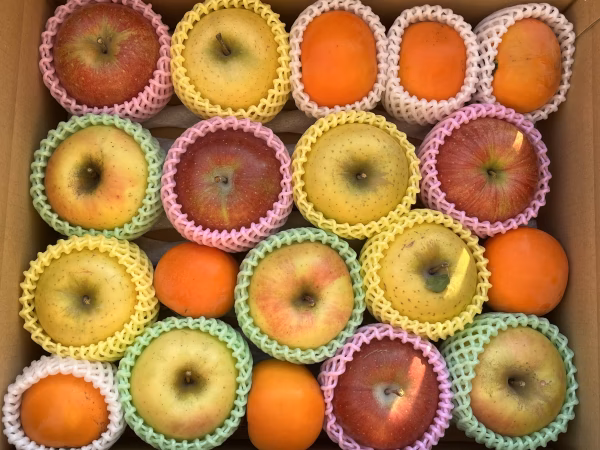 同時期に収穫できる、りんごと柿を詰め合わせて発送します。