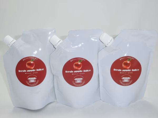 薄紅色のなめらかな口当たり「あきばえ」使用。100%ストレートりんご果汁。