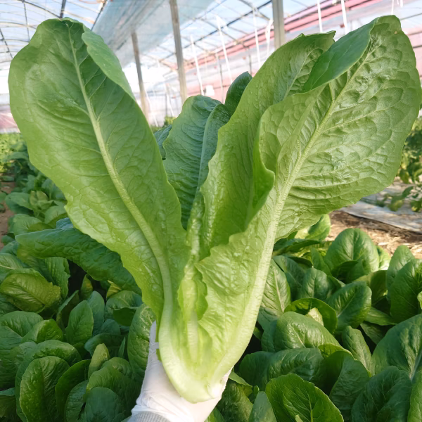 →寒さを乗り越えてじっくり育ったロメインレタスは、しっかりした歯ごたえが最高!おおぶりにちぎって、お気に入りのドレッシングで豪快にどうぞ!