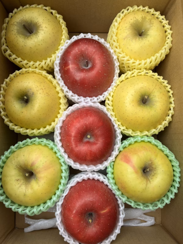 小沢農園のこの時期に収穫できるりんごの4品種詰合せです! シャキシャキりんご🍎完熟サンふじ、甘~いりんご🍏ぐんま名月、パリッとさわやかりんご🍏シナノゴールド、甘いシャキシャキりんご🍎あいかの香りの贅沢4品種の詰合せです。 ご注文を頂き次第、早めに発送いたします。 なるべくきれいな状態のりんごで荷造りする予定ですが、りんごに葉かげなどの色むらや枝すれ、サビ(※)があるものなどが含まれますので、ご理解くださいますようお願いします。 ※サビとはりんごの果皮がザラザラしている状態です。 これは果皮のみで中の果肉・味には、ほとんど影響がありません。 🍎完熟サンふじ🍎 強い甘味とほどよい酸味、バランスのとれた信州産の「サンふじ」りんごです。シャキッ!とした歯ごたえで、果汁もたっぷり! 樹上で完熟したりんごをお届けします。 ※サンふじは蜜が入りやすい品種ですが、その年の天候に左右されるため、蜜入り保証はしておりません。 ※りんごは完熟すると、りんご自身が内側から作り出す天然のワックス成分によりベタベタすることがありますが、安心してお召し上がりください。 🍏ぐんま名月🍏 甘味が強く、酸味は少なめです。果肉は歯ごたえがあり、香りが良くてジューシーな黄色いりんごです。果皮の一部がほんのりと赤く着色しているものもあります。 🍏シナノゴールド🍏 サクサクしていて、とてもジューシーで、甘味の中にしっかりとした酸味を感じることができる、さわやかな風味の黄色いりんごです。樹上で完熟したりんごをお届けします。 シナノスイート、シナノゴールドは「りんご3兄弟(秋映、シナノスイート、シナノゴールド)」のうちの一品種で、長野県のオリジナル品種です。 🍎あいかの香り🍎 上品で爽やかな香りがする、甘みが強く、酸味が少ない、シャキシャキのりんごです。 何年も前に植えて、ようやく今年から収穫できるようになりました! ◆容量、数量の目安 3kg箱:8~11個入り 5kg箱:13~20個入り 10kg箱:26~40個入り フルーツキャップやりんご専用のパックを使用し、箱に入れて発送します。 ※りんごの大きさにより個数が異なります。容量、個数は目安ですので、容量、個数を保証するものではございません。 🍎美味しいりんごの秘訣🍎 りんごにとって葉っぱはとても大切です。 しかし、りんごは陽の光を浴びることで糖度が上がりますので、 りんご全体に陽の光が当たるような樹作りとしての剪定作業や玉回しや誘引をしています。 また、小沢農園では、葉摘み作業としての葉っぱを取る量をなるべく少なくするよう心掛けています。 そのため、りんごに葉かげなどの色むらあることがございますので、ご理解くださいますようお願いします。 ▼注文に際しての注意点(配送方法や納期指定など) ※収穫日の予想が大変難しいため、日付指定はお受け出来ません。 お届けの時間帯については、注文処理の際にご入力くださいますようお願いします。 ※長期ご不在や、ご不在の曜日がある場合は事前にご連絡をお願い致します。出来る限り配送日の対応をさせて頂きます。 ※天候状況や栽培状況により色にばらつきがあることがありますので、ご理解くださいますようお願いします。 ※お客様の都合により商品を受け取れなかった場合、または受け取りまでに期間がかかった場合は、生鮮品につき「返品・再配送」は致しかねます。 ▼商品が届いたら 商品をお受取いただきましたら、すぐに商品の状態をご確認ください。 万が一、不具合があった場合は、当日か翌日にはご連絡ください。 誠心誠意、対応いたします。お時間が過ぎてからの対応は致しかねます。 どのような状態なのか確認が必要なため、お写真を撮っていただきご連絡ください。