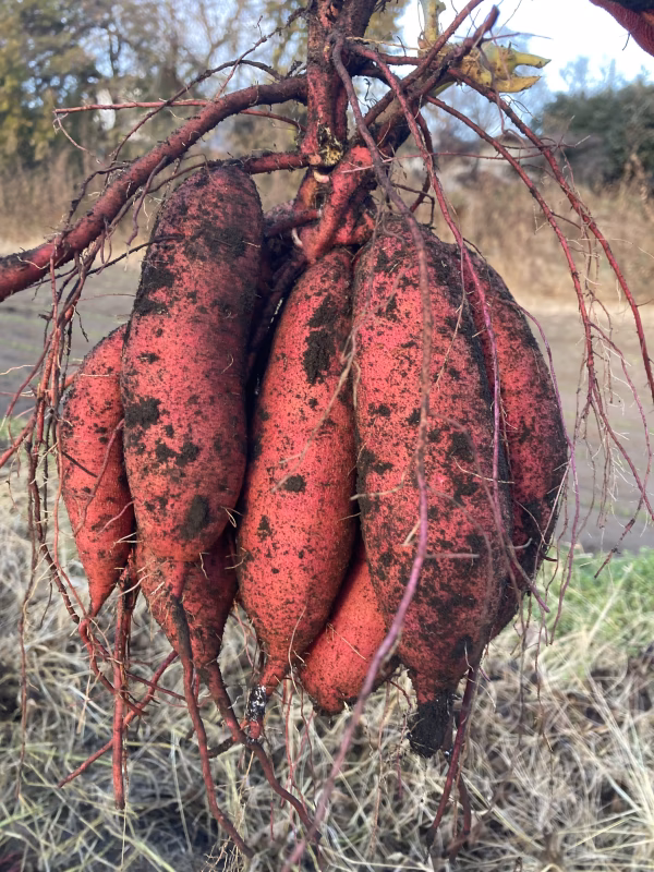 さつまいも「栗かぐや」ですが、2023年に市場デビューした新品種のサツマイモです。 形はなだらかな紡錘形で、近年人気のねっとり系とは一線を画すほくほく系の肉質です。 輪切りにしたときの満月のような姿は、かぐやの名付けがぴたりとはまります。 食味も良く、上品な甘さで、長期貯蔵しても過度の粘質になりにくいのも特徴です。