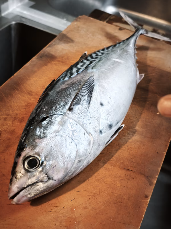 幻の魚とも称されるスマガツオ、鮮度が命です。朝獲れをすぐに捌いて超低温で冷凍しました。生食用の半身ブロックとおまけの頭です。解凍後血合骨を取り、刺身や炙りでお召し上がりください。