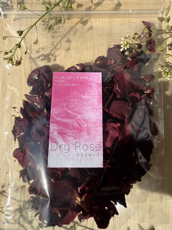 手作業で摘み取ってからひとつひとつ花びらにして、深紅の色合いを残しゆっくりドライにしています。
