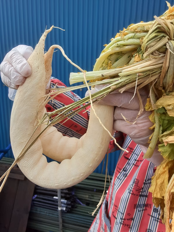 雨除けテント下で天日干しをした、たくあん用干し大根です。